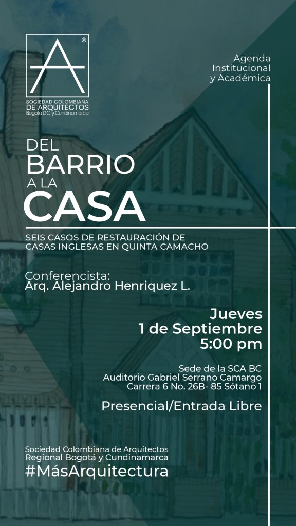 La Sociedad Colombiana de Arquitectos Regional Bogotá y Cundinamarca presenta su Ciclo de Conferencias de noviembre, con destacados temas sobre la arquitectura en Bogotá y Colombia, acompañado por una exposición de dibujos del Arquitecto Germán Samper.